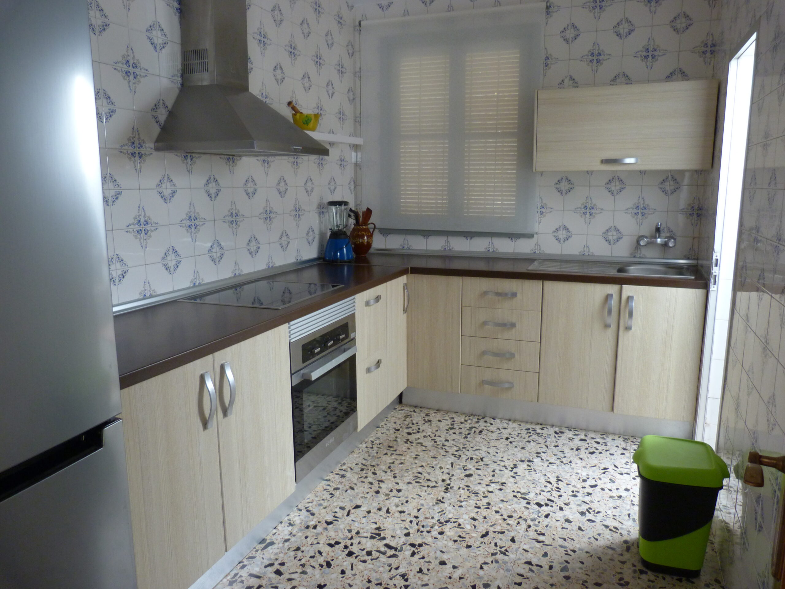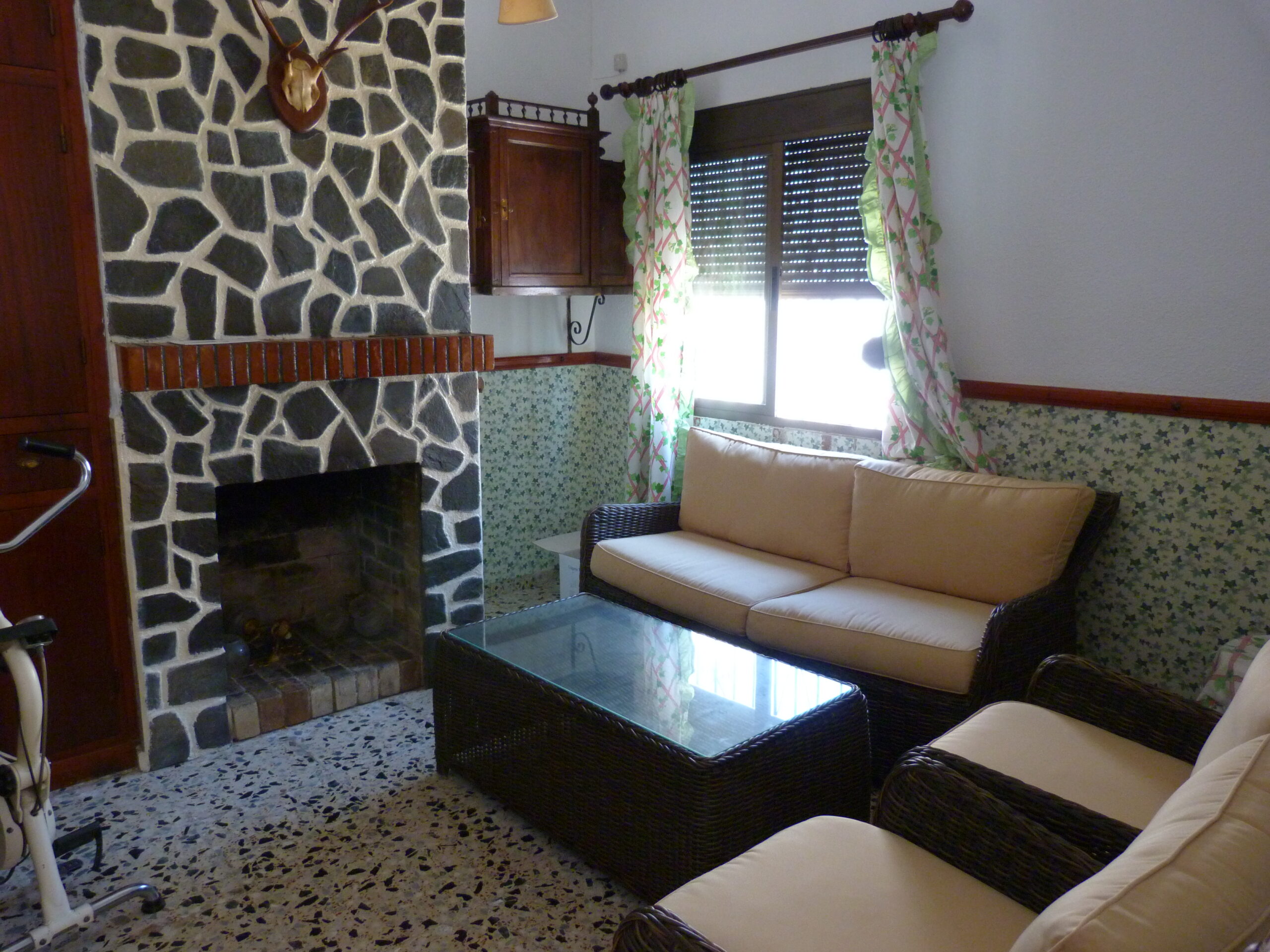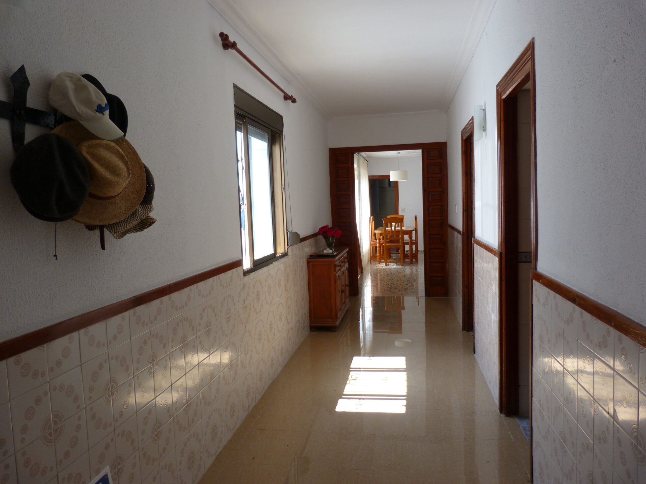 Al entrar a la propiedad, un largo pasillo nos da acceso a un salón / comedor con chimenea, un cuarto de baño, cocina totalmente equipada con salida a un lavadero y la escalera a la terraza. Hay otro salón / comedor al final del pasillo, desde el cual se accede a los tres dormitorios.