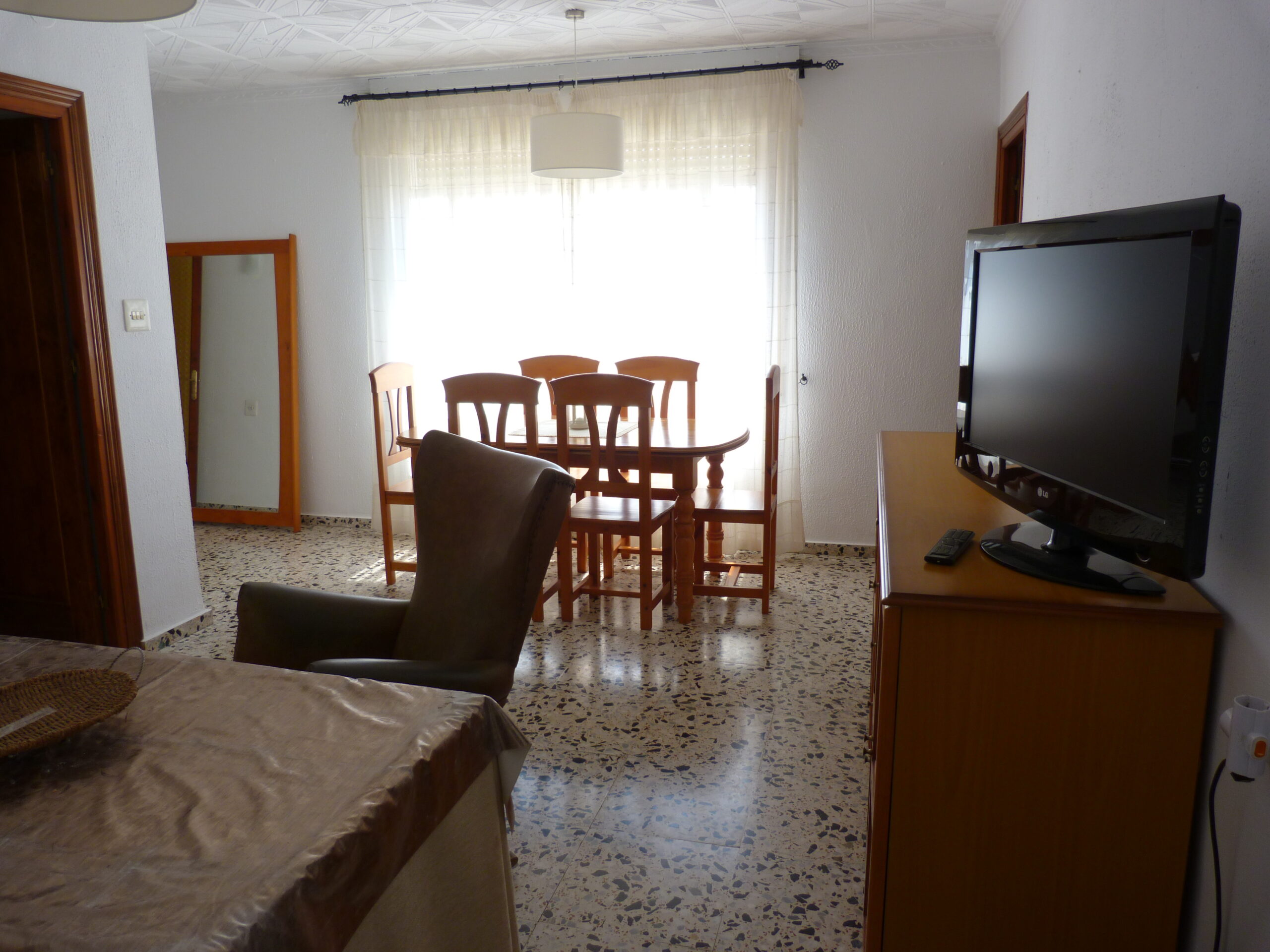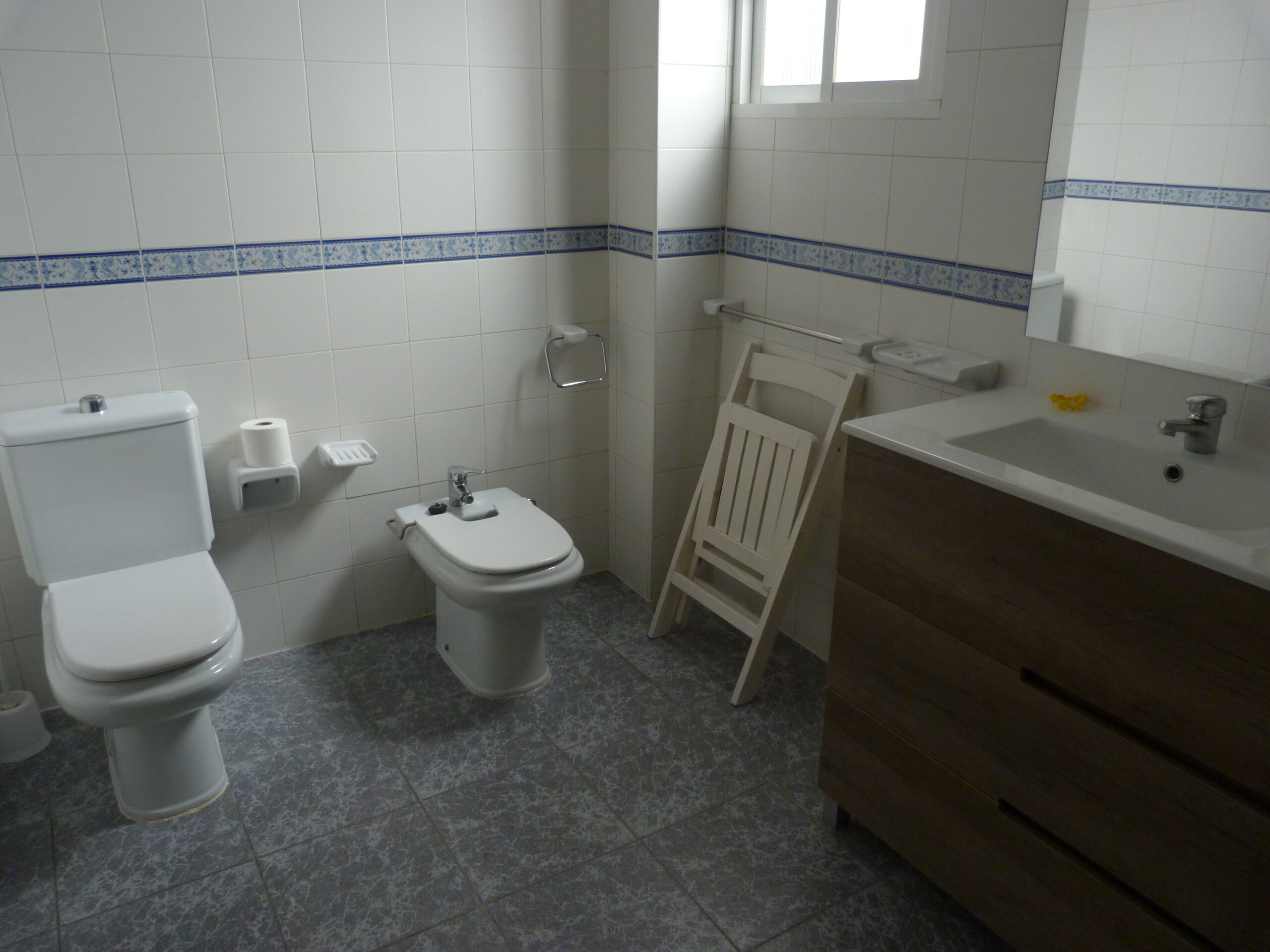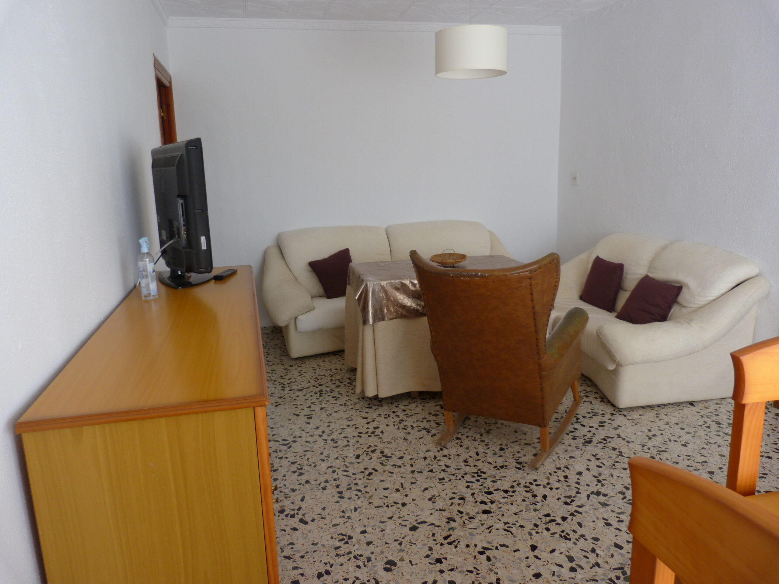 Al entrar a la propiedad, un largo pasillo nos da acceso a un salón / comedor con chimenea, un cuarto de baño, cocina totalmente equipada con salida a un lavadero y la escalera a la terraza. Hay otro salón / comedor al final del pasillo, desde el cual se accede a los tres dormitorios.