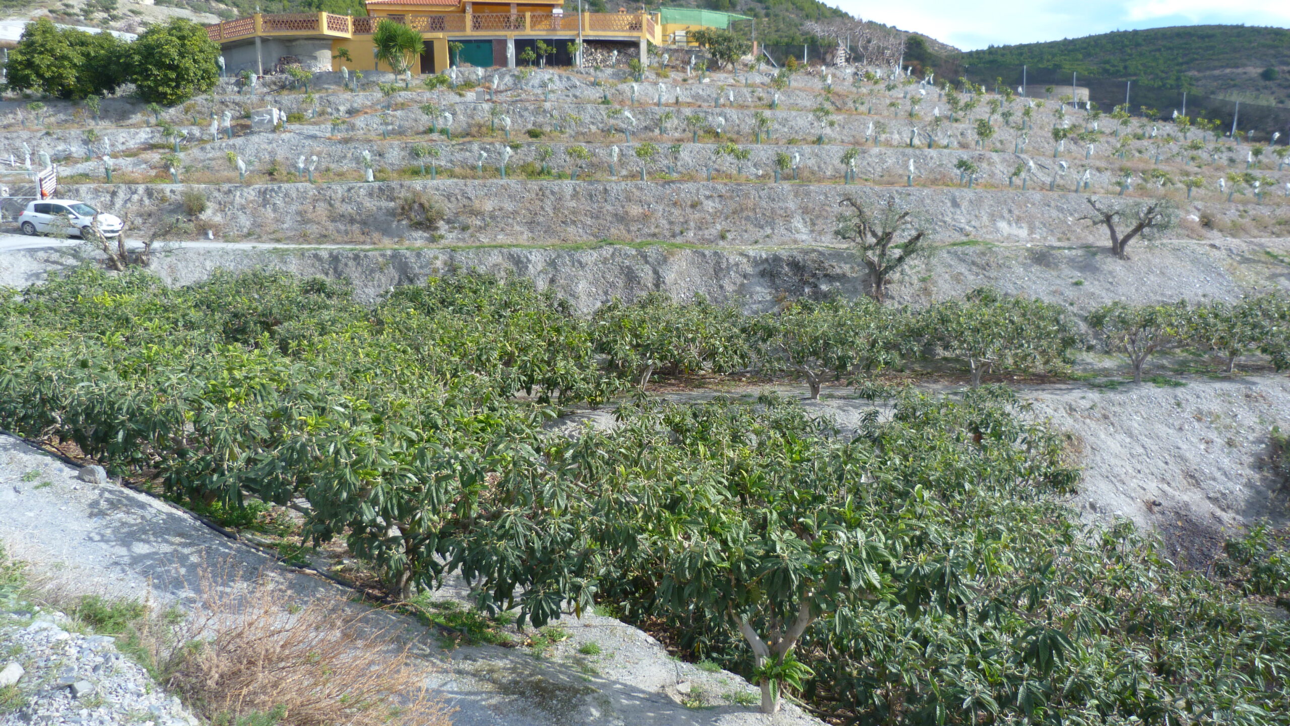 El terreno Bancales Altos tiene una superficie de 6.192 m2, de los cuales 71 son de un almacén y el resto es una plantación de nísporas en plena producción. Tiene un depósito con una capacidad de 260.000 litros.